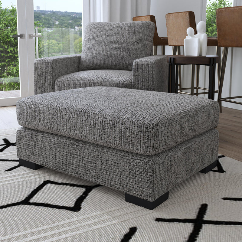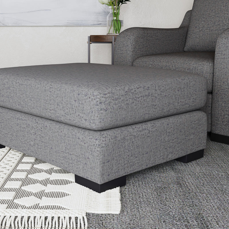 Designed to buddy up with any piece in the West Sixth Street line, or within your existing furniture, Otto provides an extra seat or a place to kick your feet up on. Upholstered in an ultra-soft, gray fabric that is durable and easy to clean. And, black recessed block legs highlight its casual style. Complete your home with Otto.